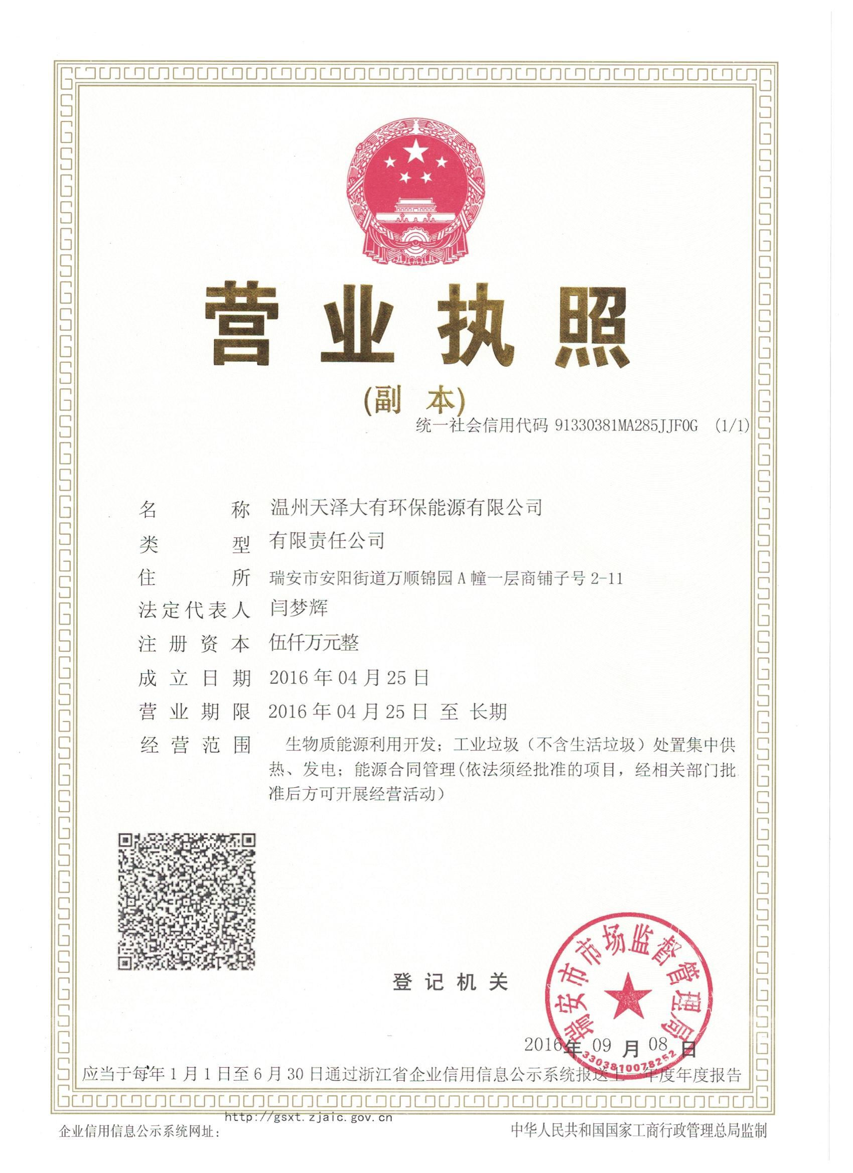 浙江天澤大有環保能源有限公司由東華科技、瑞安涵之能源公司等10位股東共同設立,注冊資本金1億元,其中東華科技持股28%。經營范圍包括生物質能源利用開發,工業垃圾及污泥(不含生活垃圾)、建筑垃圾、裝修垃圾、秸稈處置集中供熱、發電,能源合同管理等業務。
