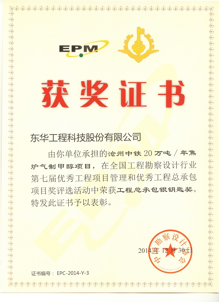 名稱:化工行業(yè)優(yōu)秀工程咨詢成果獎一等獎