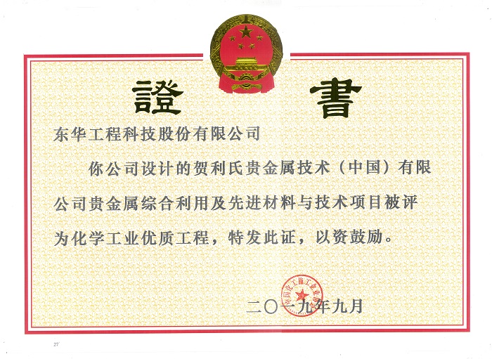 名稱:全國化學(xué)工業(yè)優(yōu)質(zhì)工程獎