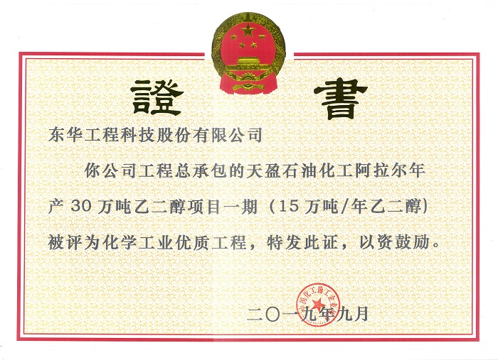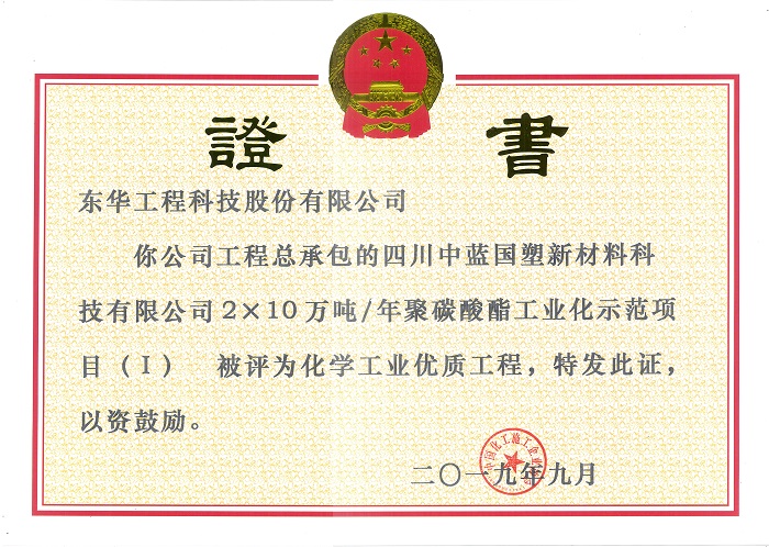 名稱:化學(xué)工業(yè)優(yōu)質(zhì)工程獎