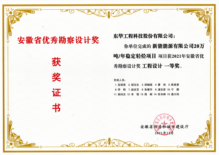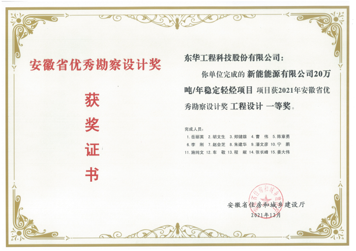 名稱:安徽省優(yōu)秀勘察設(shè)計(jì)獎工程設(shè)計(jì)一等獎