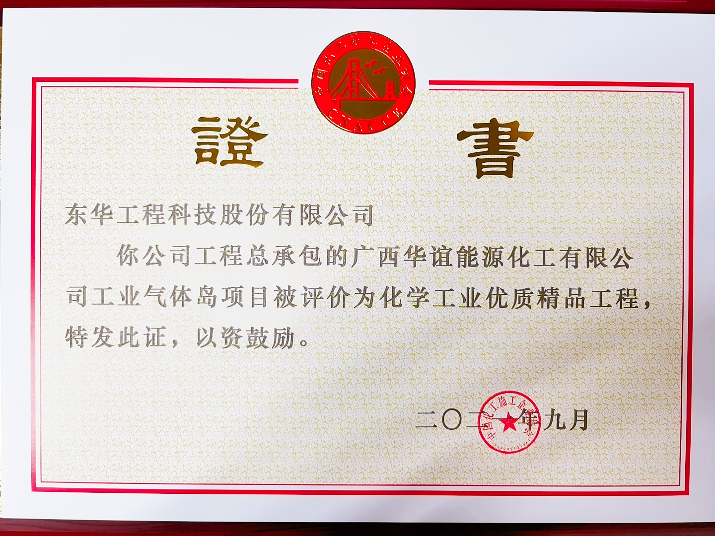 名稱:化學(xué)工業(yè)優(yōu)質(zhì)精品工程獎